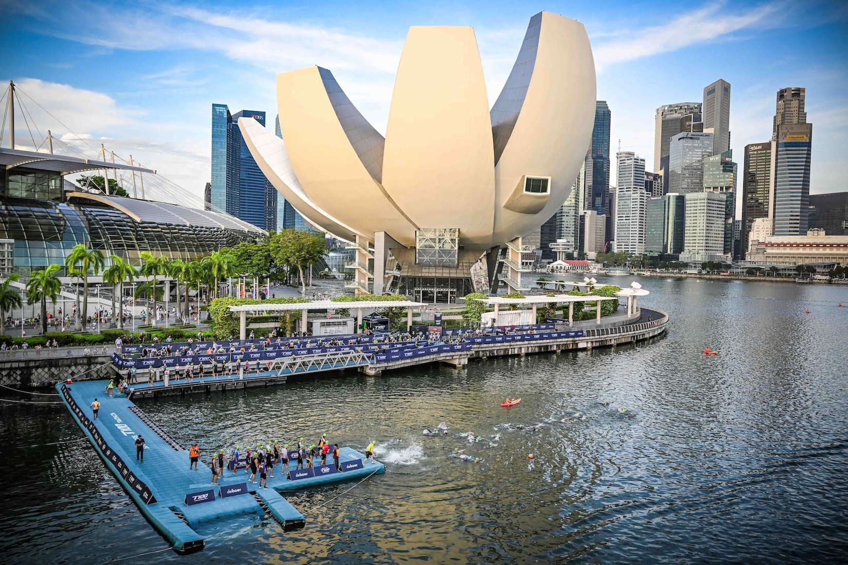 The swim for the three new triathlon events will take place in the iconic Marina Bay and their bike courses will take athletes around the heart of the financial district and over Sheares Bridge – and run around Marina Bay.