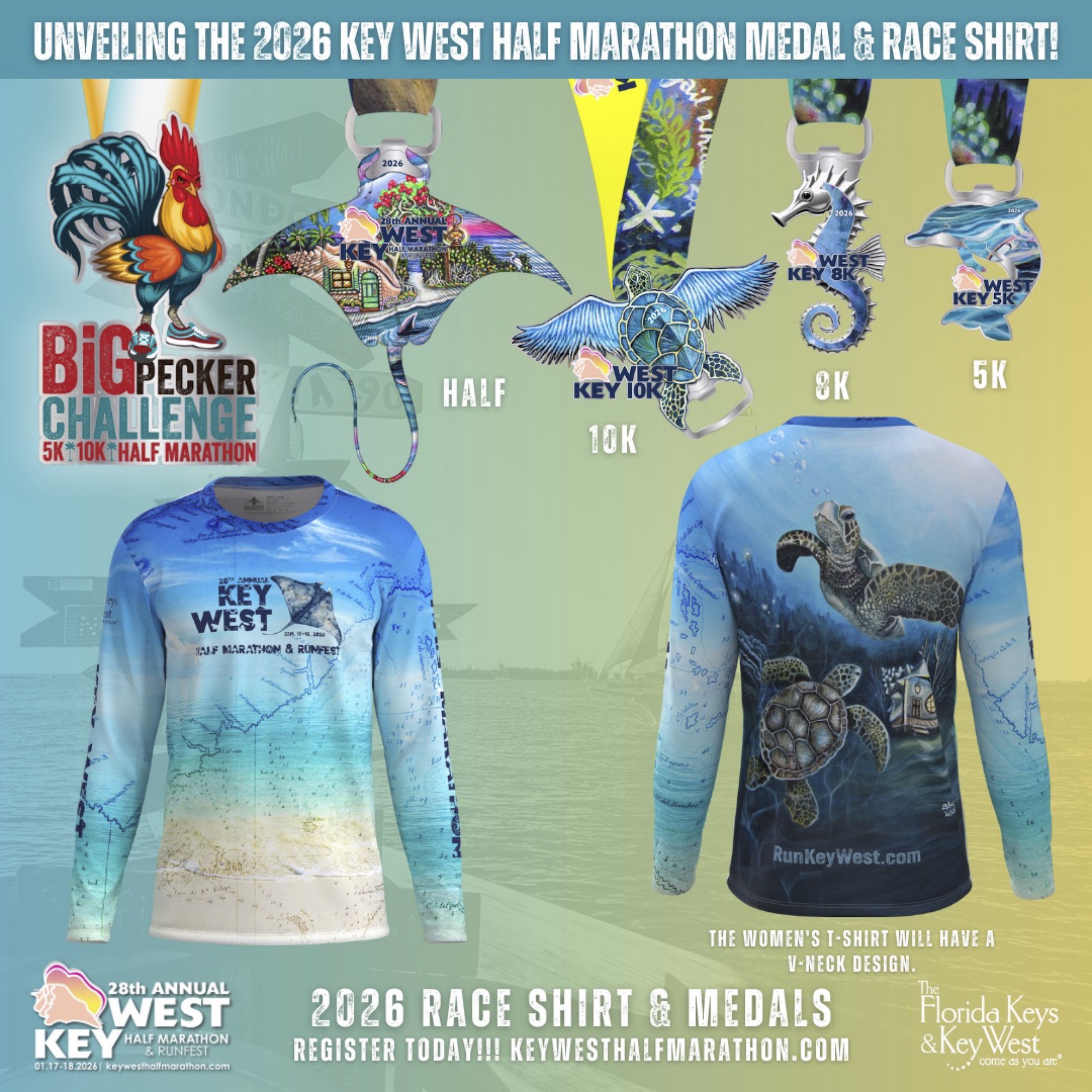 KEY WEST, Fla. (September 30, 2025) /ENDURANCE SPORTSWIRE/ — The Key West Half Marathon & Runfest, once again rated a top 10 half marathon by USA Today, is back Jan. 17-18, 2026. The event has unveiled new race day shirts and medals that showcase the spirit and culture of the local community that thousands get to experience at the Key West Half Marathon & Runfest. Registration is now open for all events.