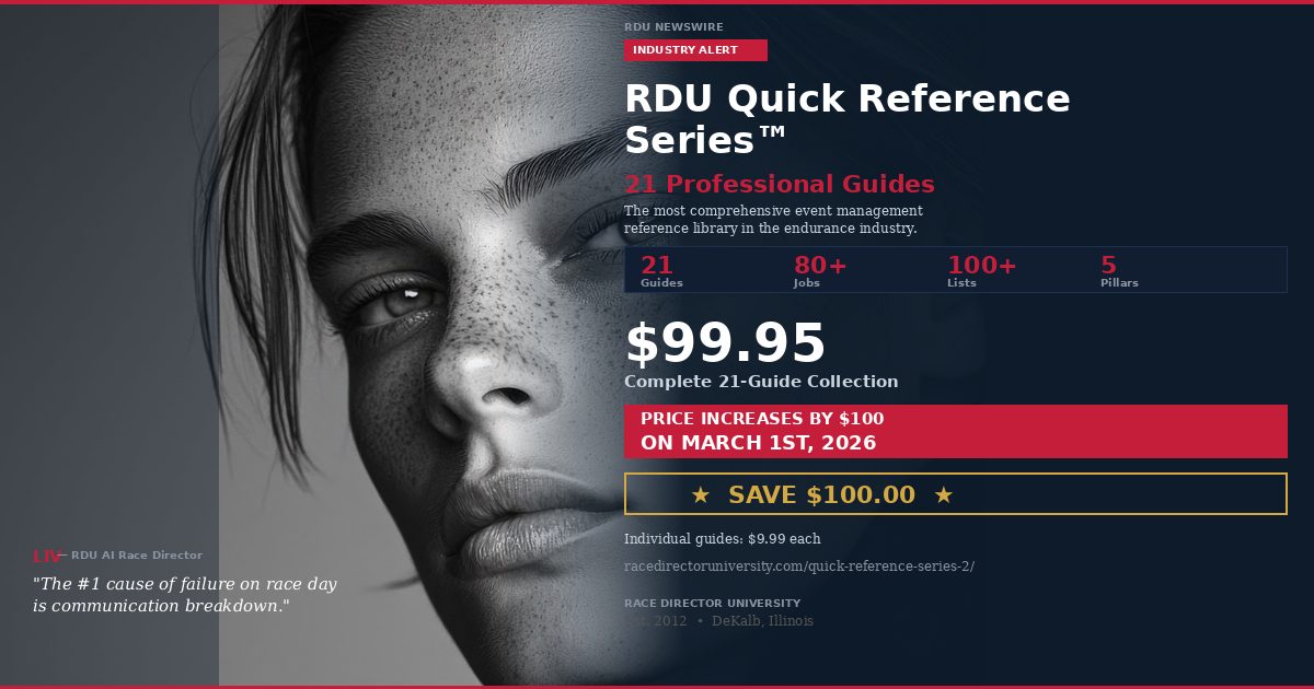 DeKalb, Ill. (February 17, 2026) /ENDURANCE SPORTSWIRE/ – Race Director University (RDU) has released the Quick Reference Series, a collection of 21 professional reference guides designed to standardize communication and operational protocols for endurance event management teams. The print-ready PDF guides, formatted at 11” × 17” ledger size for double-sided tri-fold field use, are available now at racedirectoruniversity.com.