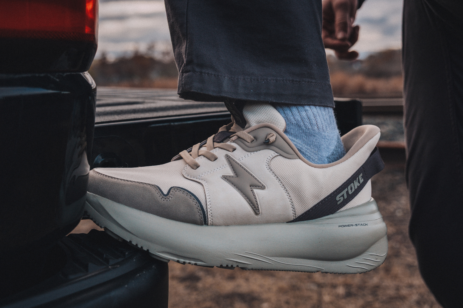 STOKE’s inaugural styles, FO-MO and VERSA, were engineered around that reality. Built on a wide, stable platform with high-cushion underfoot construction and flexible uppers designed to accommodate natural foot expansion throughout the day, the shoes prioritize comfort, fit, and durability over performance gimmicks. The result is a sneaker built less for highlight reels and more for hardware stores, sidelines, and long workdays.